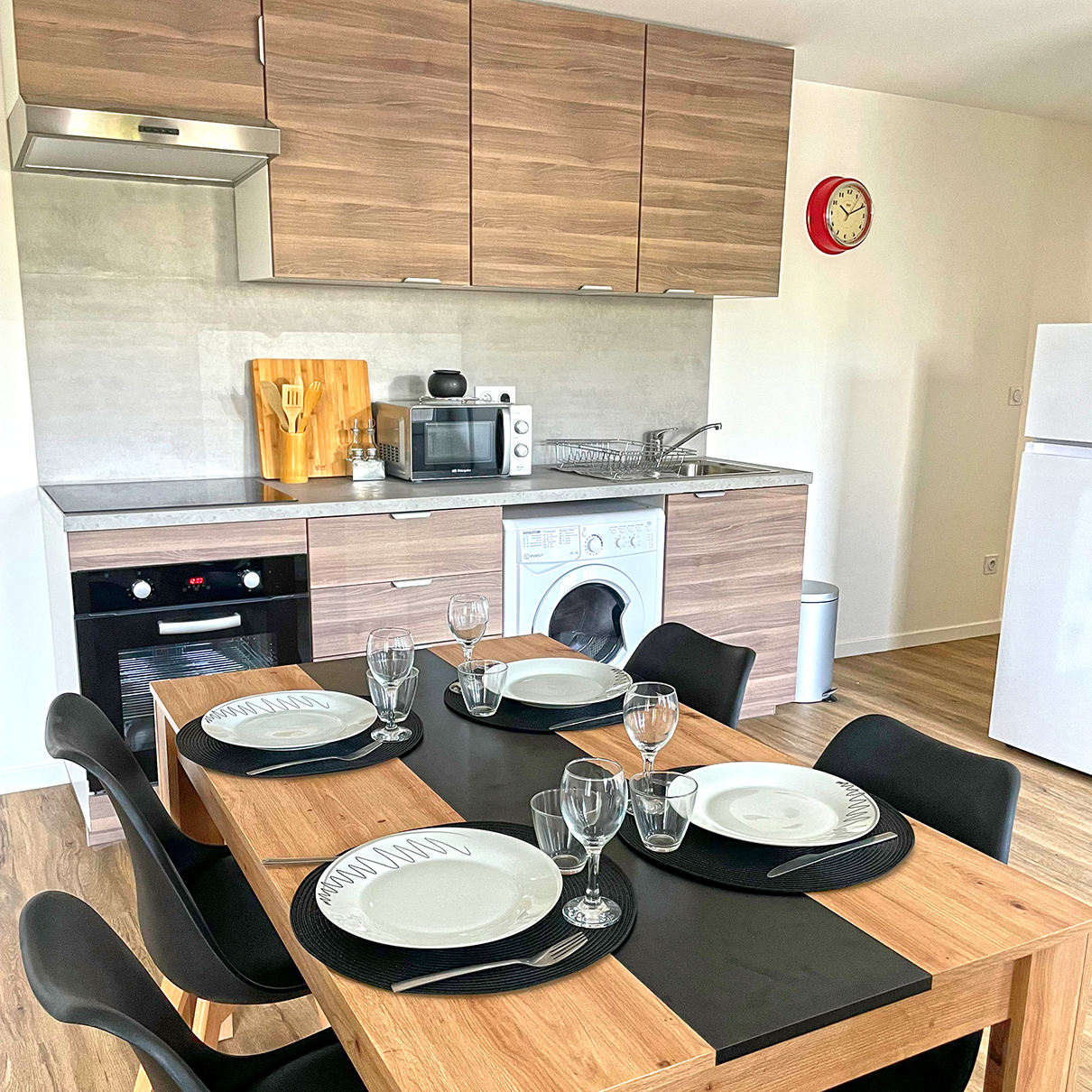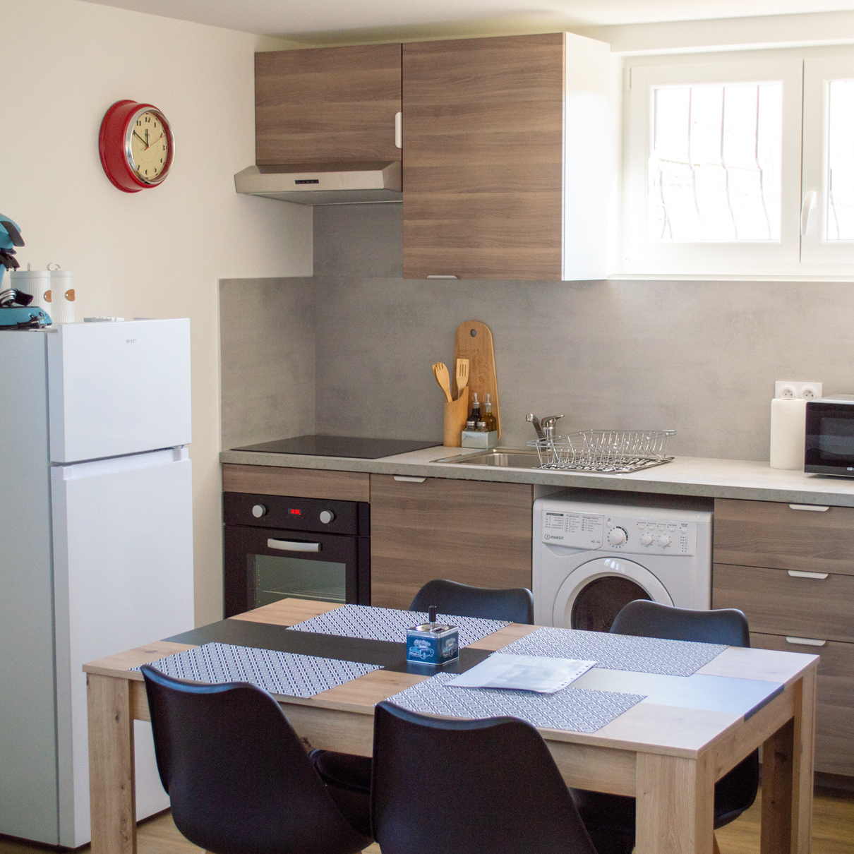Pour un séjour en toute liberté, chaque appartement est amménagé avec le confort de « la maison ». Envie de prendre le petit déjeuner ou diner sur place? Vous pouvez cuisiner vos plats favoris. Du linge sale qui n'était pas prévu? Un petit tour au lave-linge sèchant lui rendra sa fraicheur.